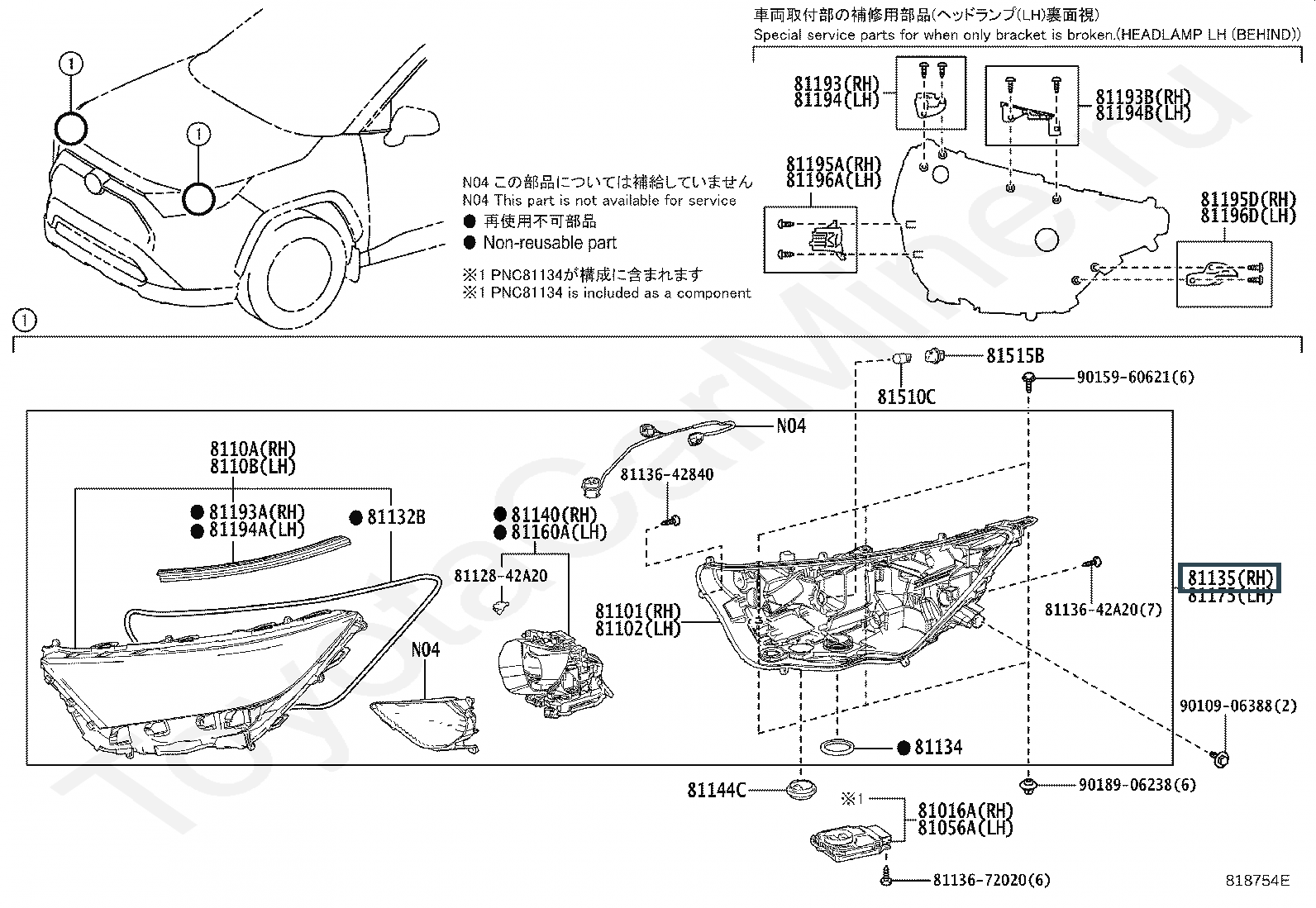 Название по каталогу: UNIT ASSY, HEADLAMP, RH