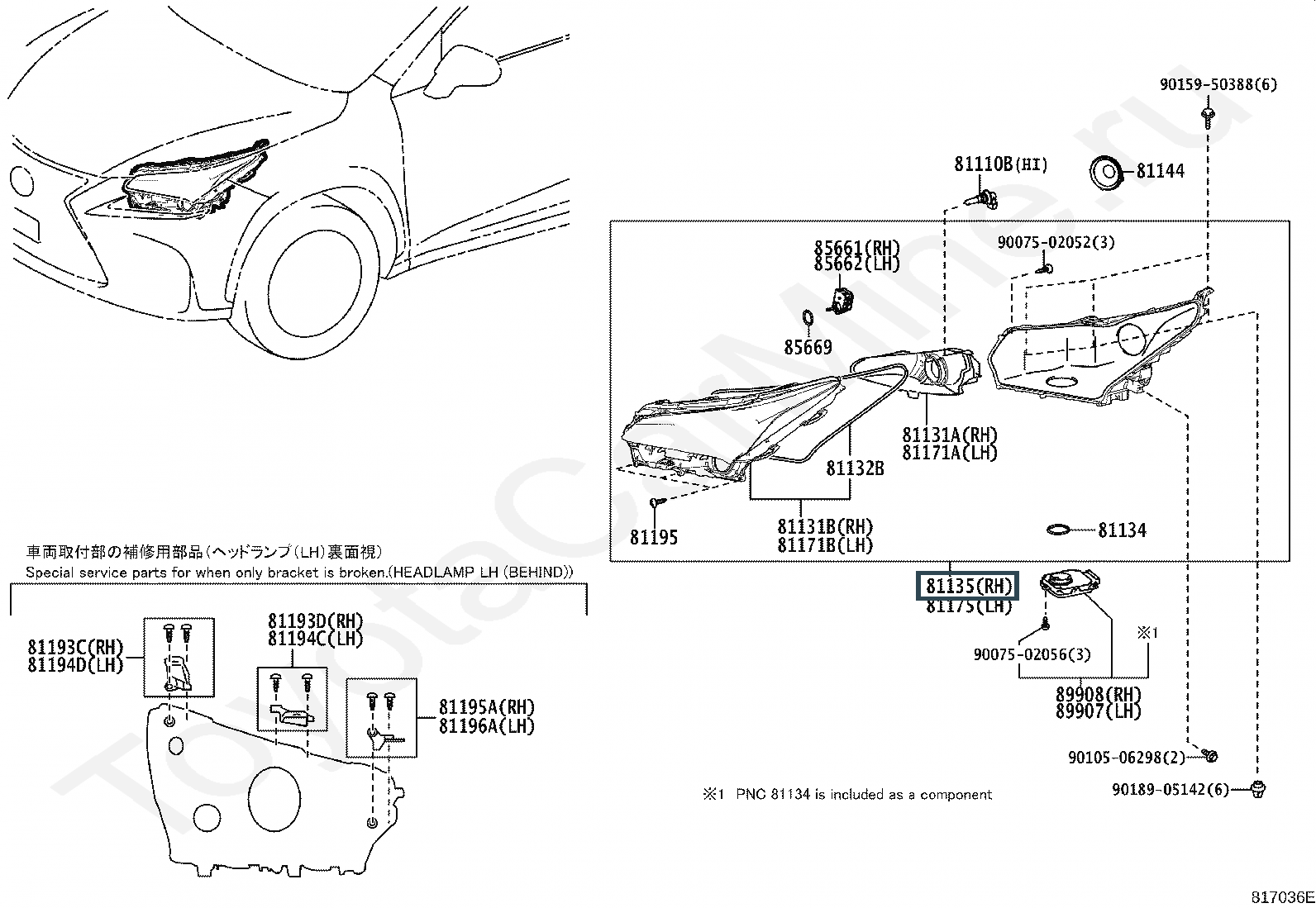 81145-78220, UNIT ASSY, HEADLAMP, RH