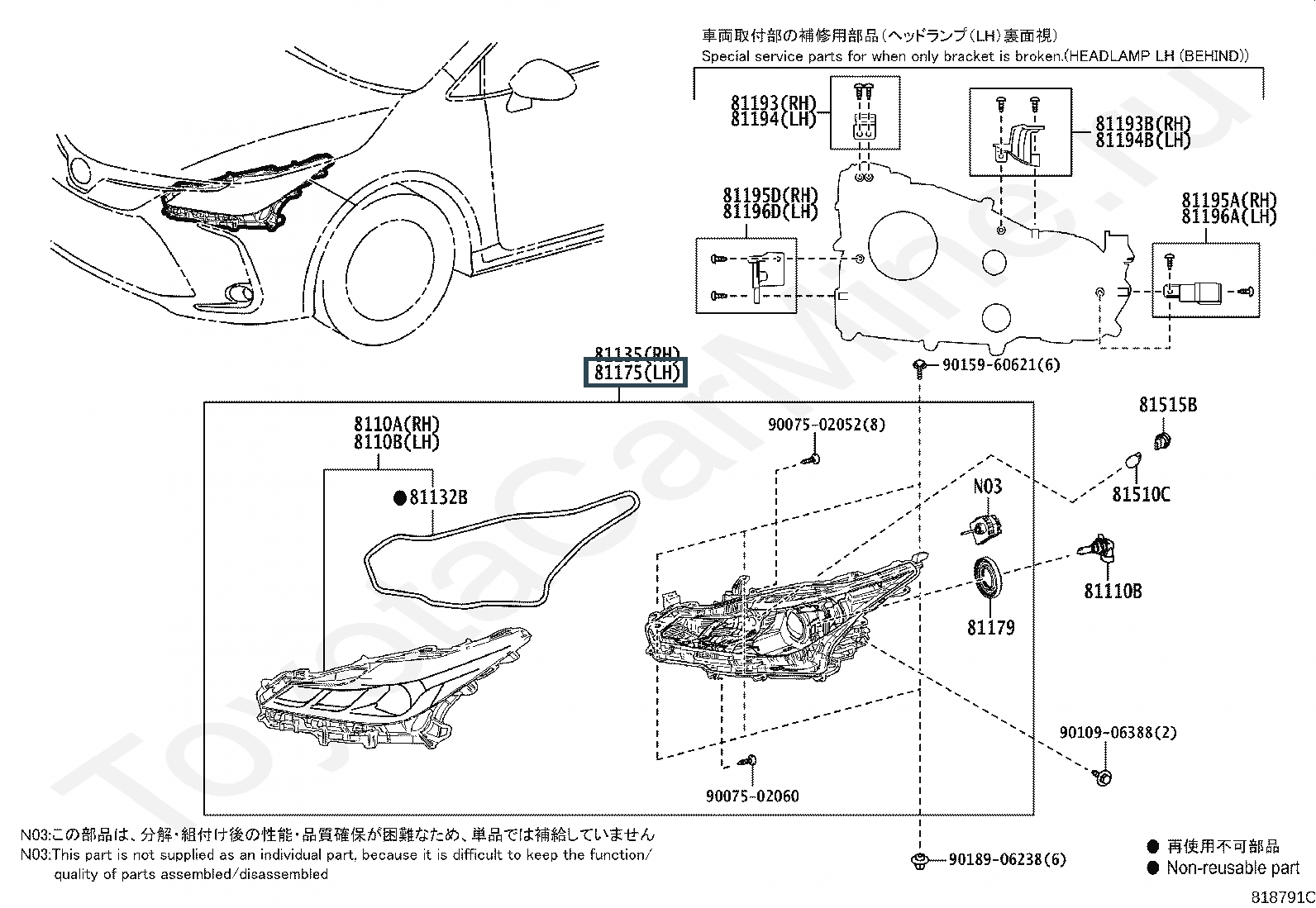 Название по каталогу: UNIT ASSY, HEADLAMP, LH
