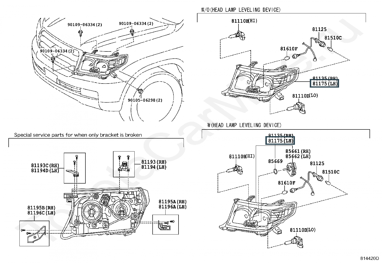 Название по каталогу: UNIT ASSY, HEADLAMP, LH