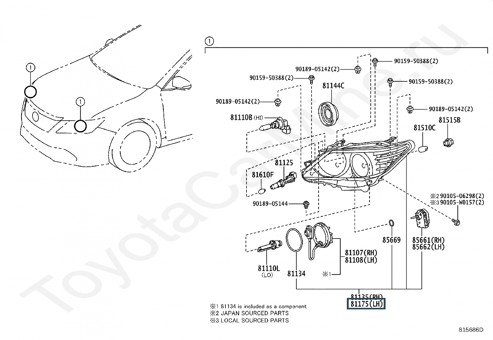 Название по каталогу: UNIT ASSY, HEADLAMP, LH