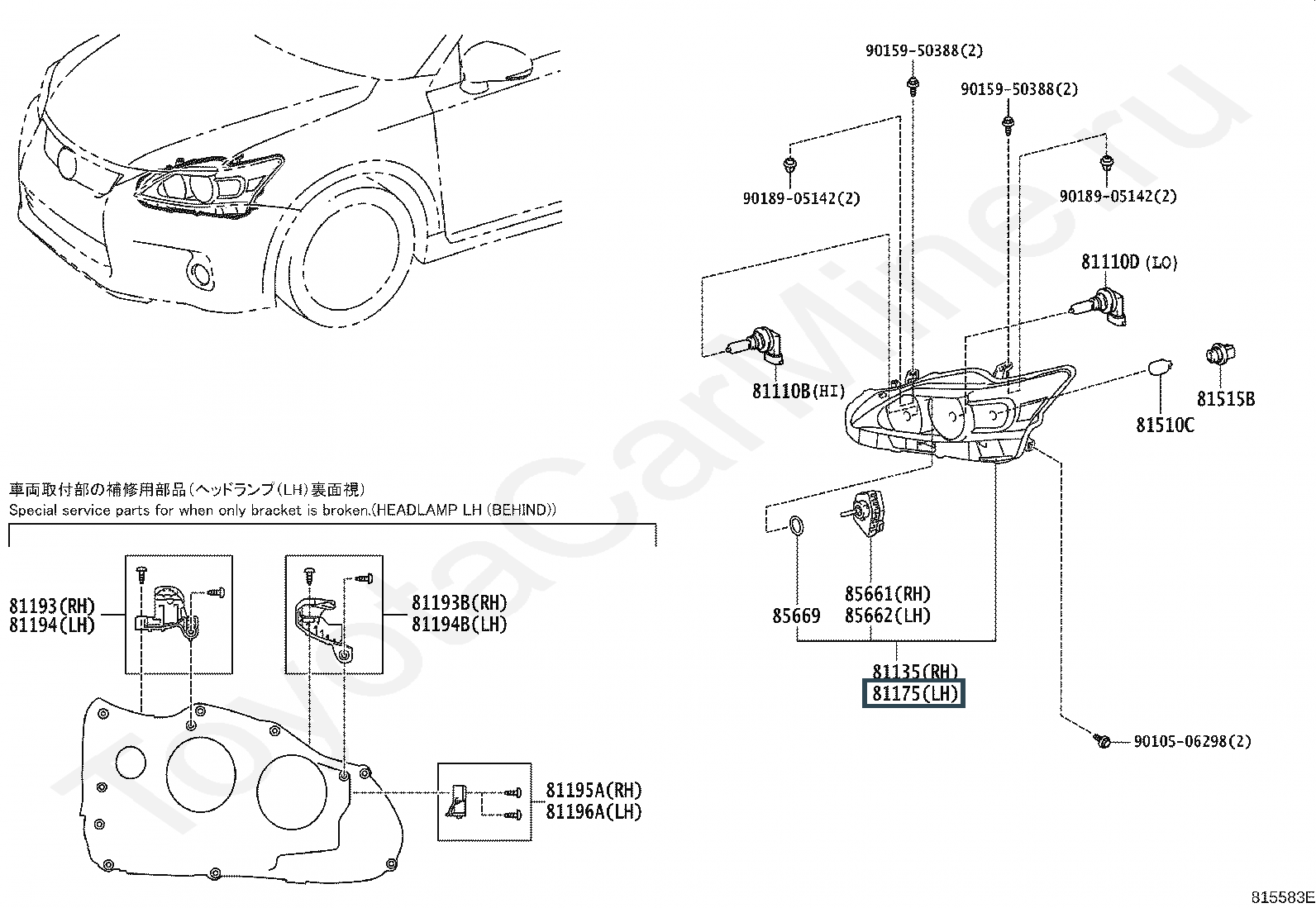 81185-76060, UNIT ASSY, HEADLAMP, LH