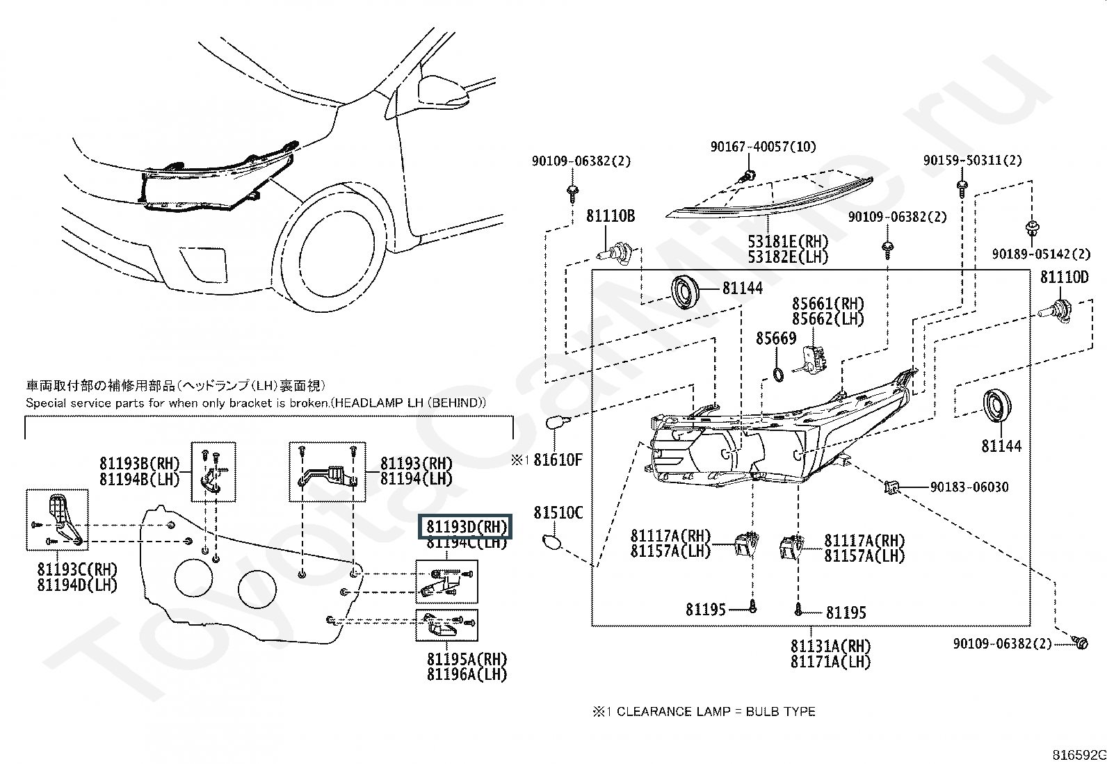 81193-02280, RETAINER, RH HEADLAMP PROTECTOR, UPPER LH