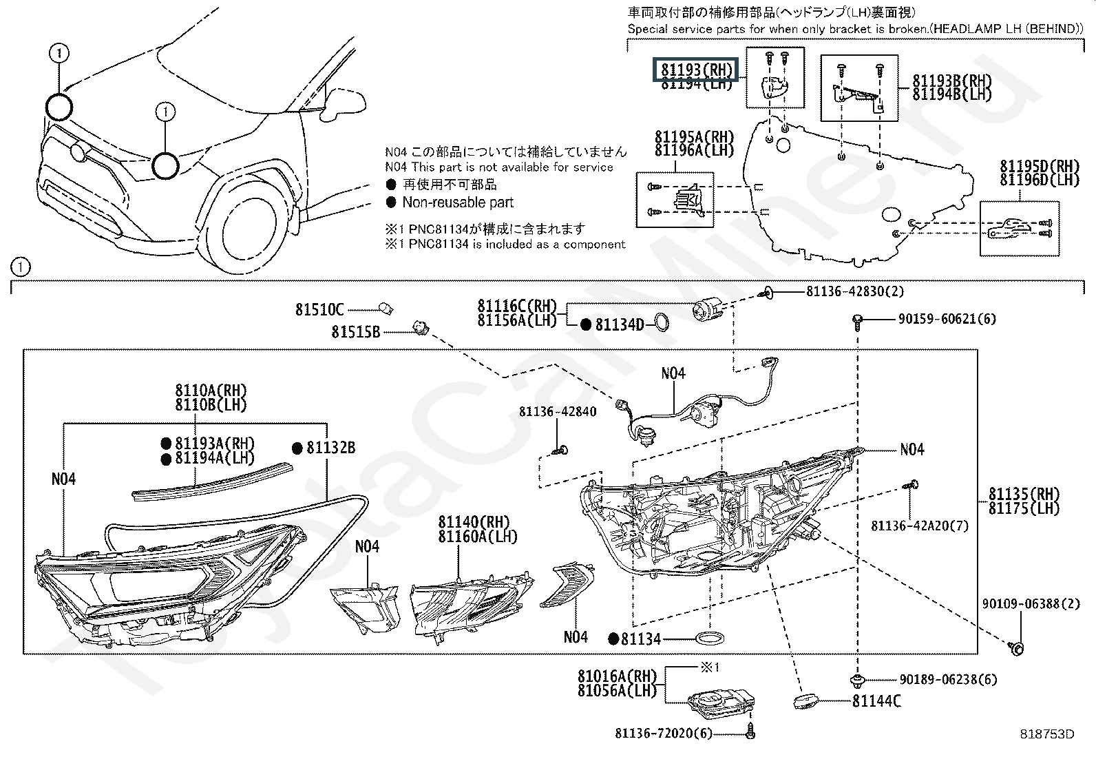 81193-42050, Кронштейн фары верхний правый