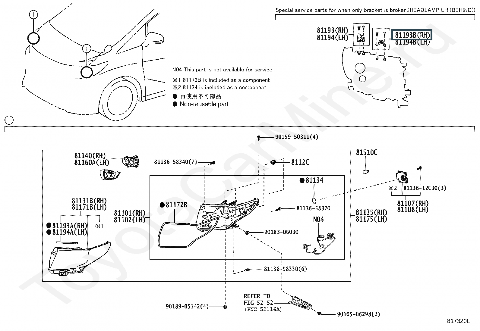 81193-58081, RETAINER, HEADLAMP PROTECTOR, UPPER RH NO.2