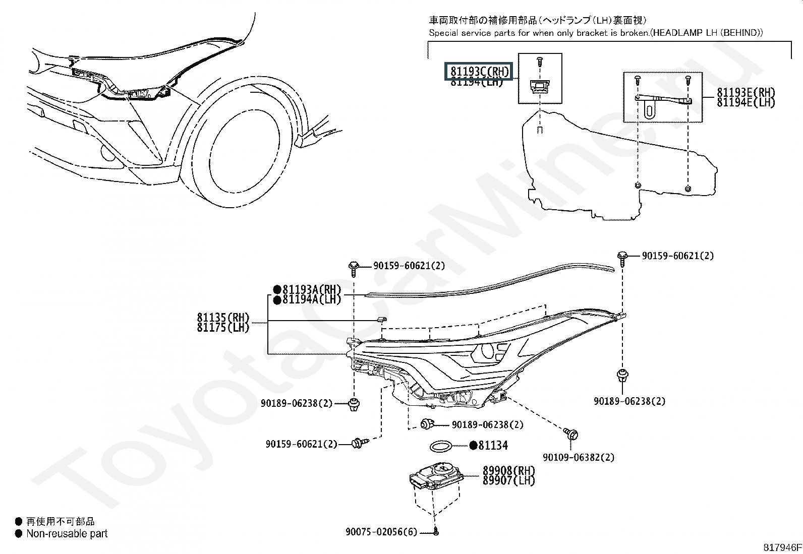 81193-F4010, RETAINER, RH HEADLAMP PROTECTOR, UPPER RH