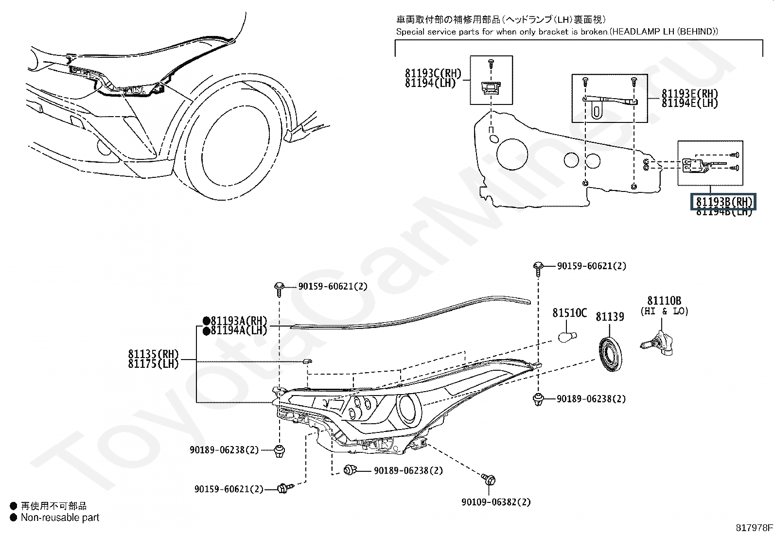 81193-F4020, RETAINER, HEADLAMP PROTECTOR, UPPER RH NO.2