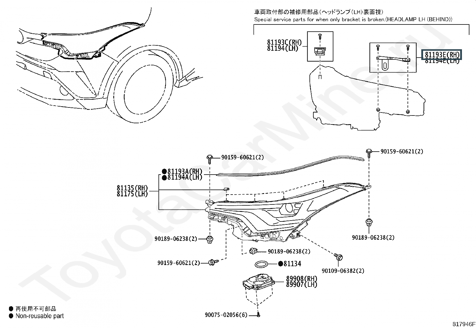 81193-F4030, RETAINER, HEADLAMP PROTECTOR, UPPER RH NO.3