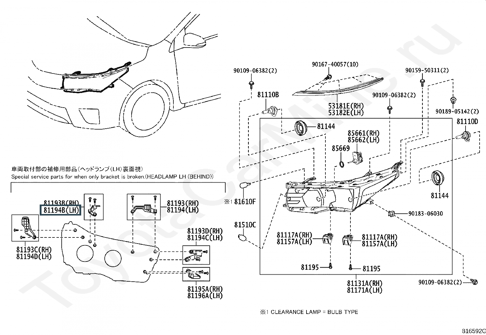 81194-02100, RETAINER, HEADLAMP PROTECTOR, UPPER LH NO.2