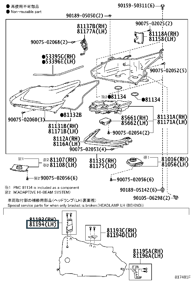 81194-60180, RETAINER, HEADLAMP PROTECTOR, UPPER LH
