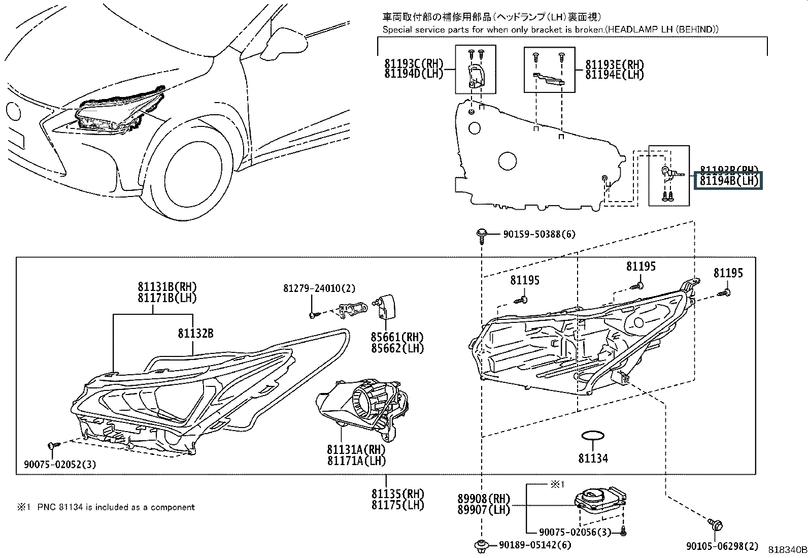 81194-78040, RETAINER, HEADLAMP PROTECTOR, UPPER LH NO.2