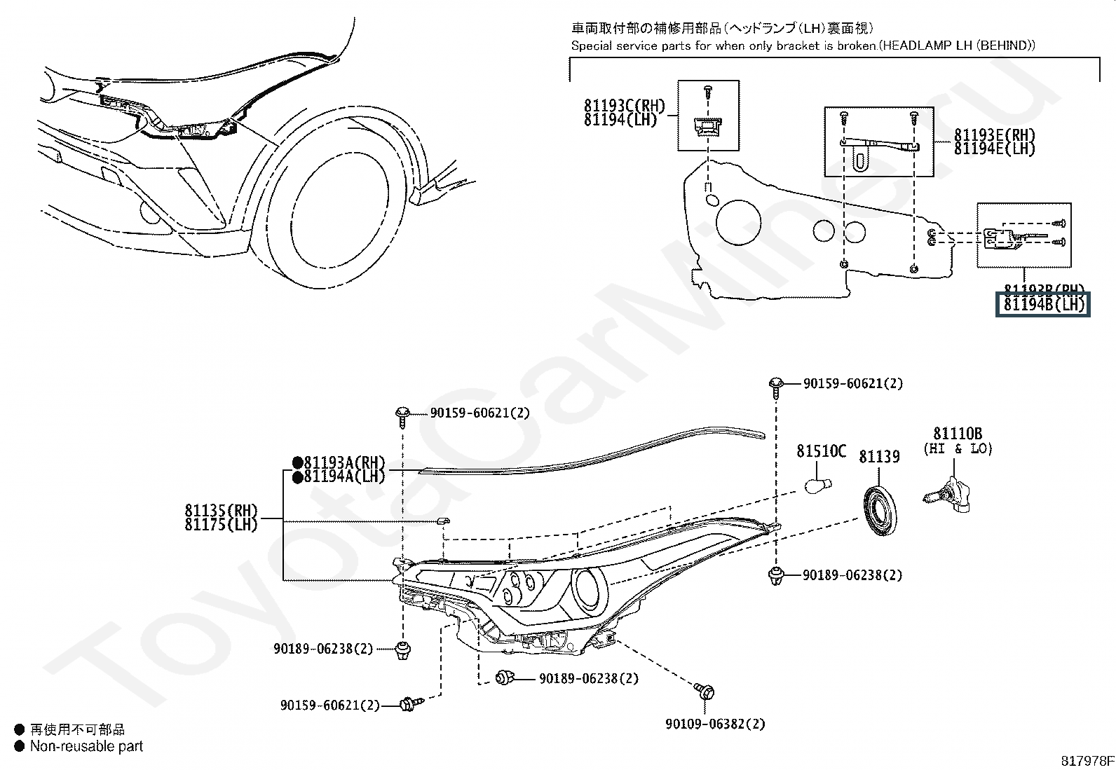 81194-F4020, RETAINER, HEADLAMP PROTECTOR, UPPER LH NO.2