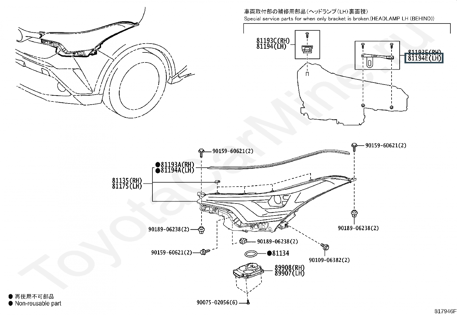 81194-F4030, RETAINER, HEADLAMP PROTECTOR, UPPER LH NO.3