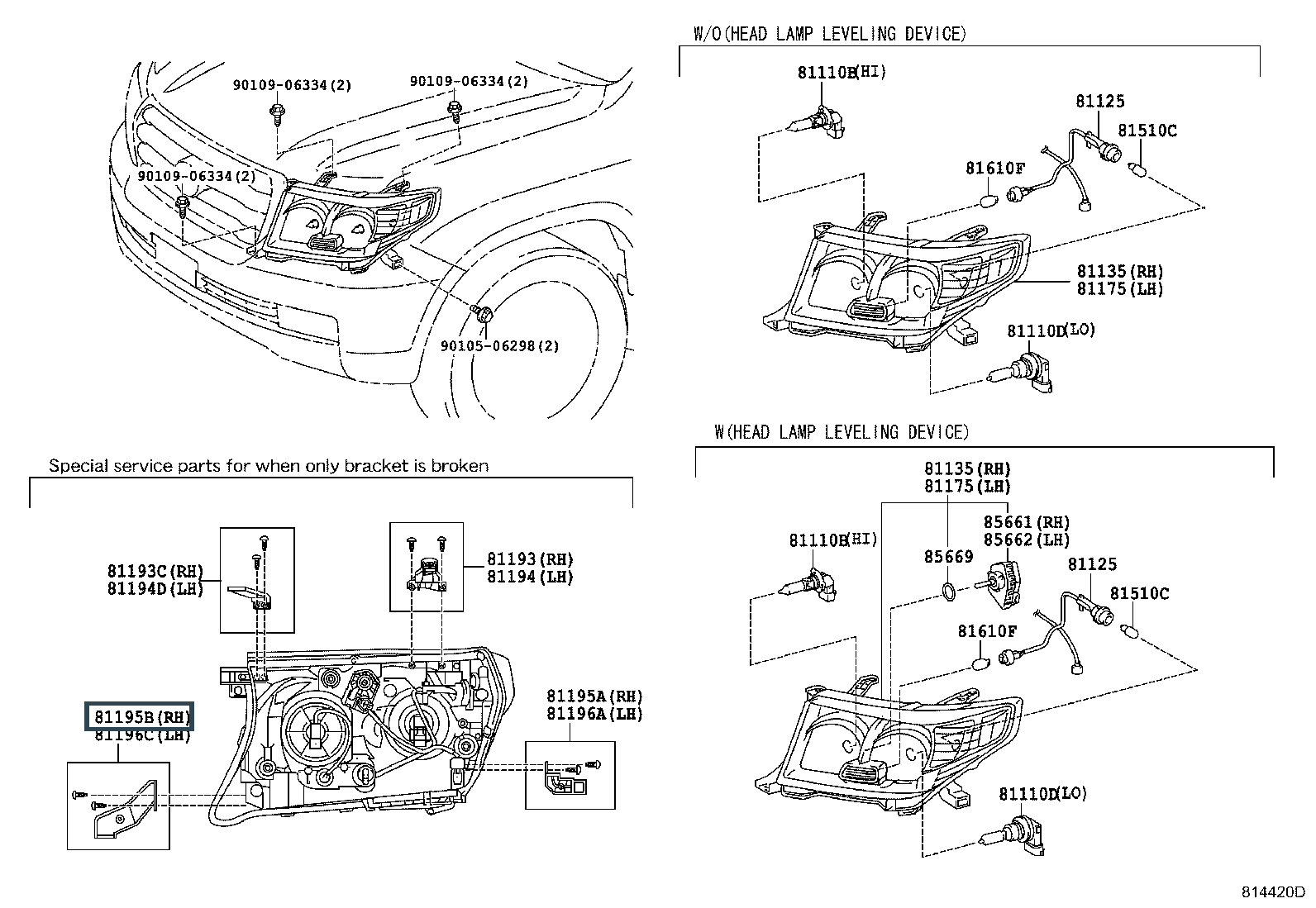 81195-60150, RETAINER, RH HEADLAMP PROTECTOR, LOWER RH