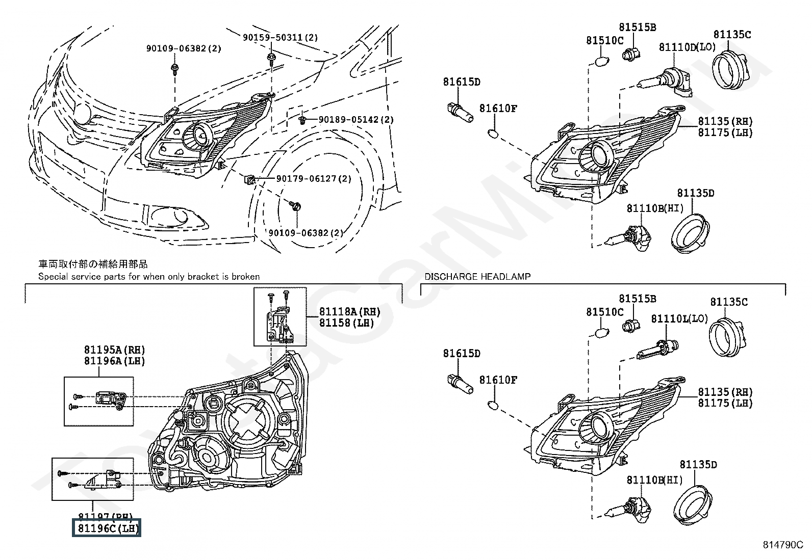 81196-05020, RETAINER, LH HEADLAMP PROTECTOR, LOWER LH