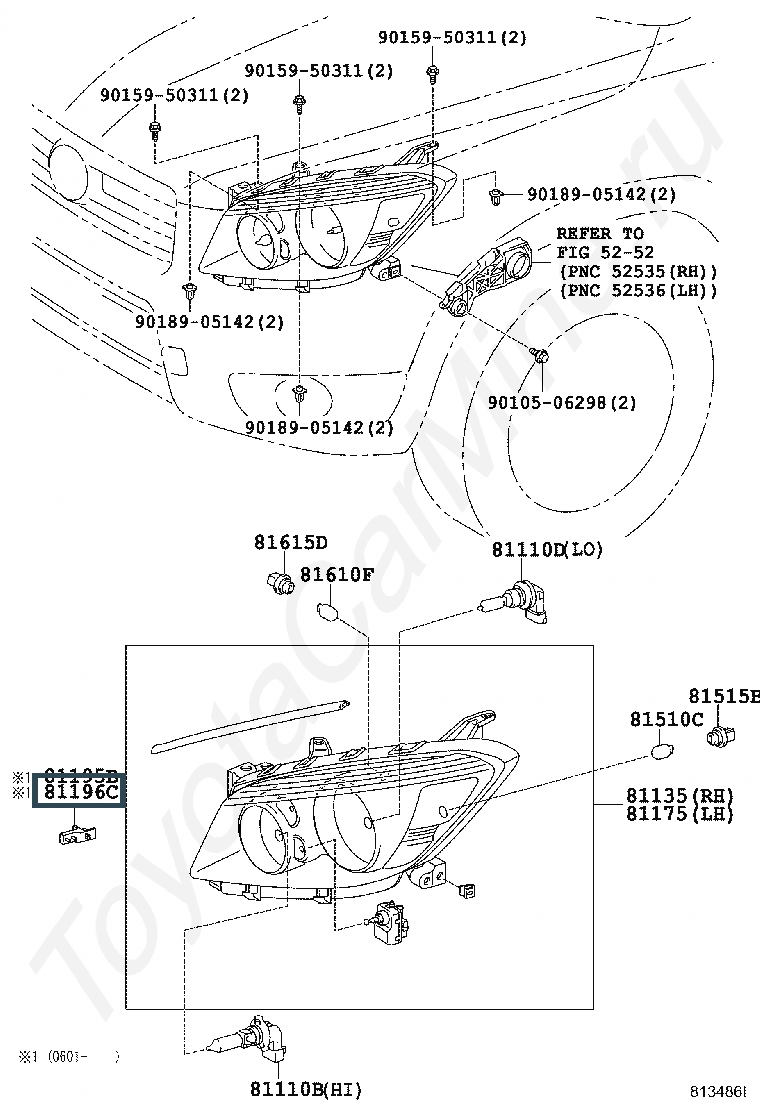 81196-42020, RETAINER, LH HEADLAMP PROTECTOR, LOWER LH