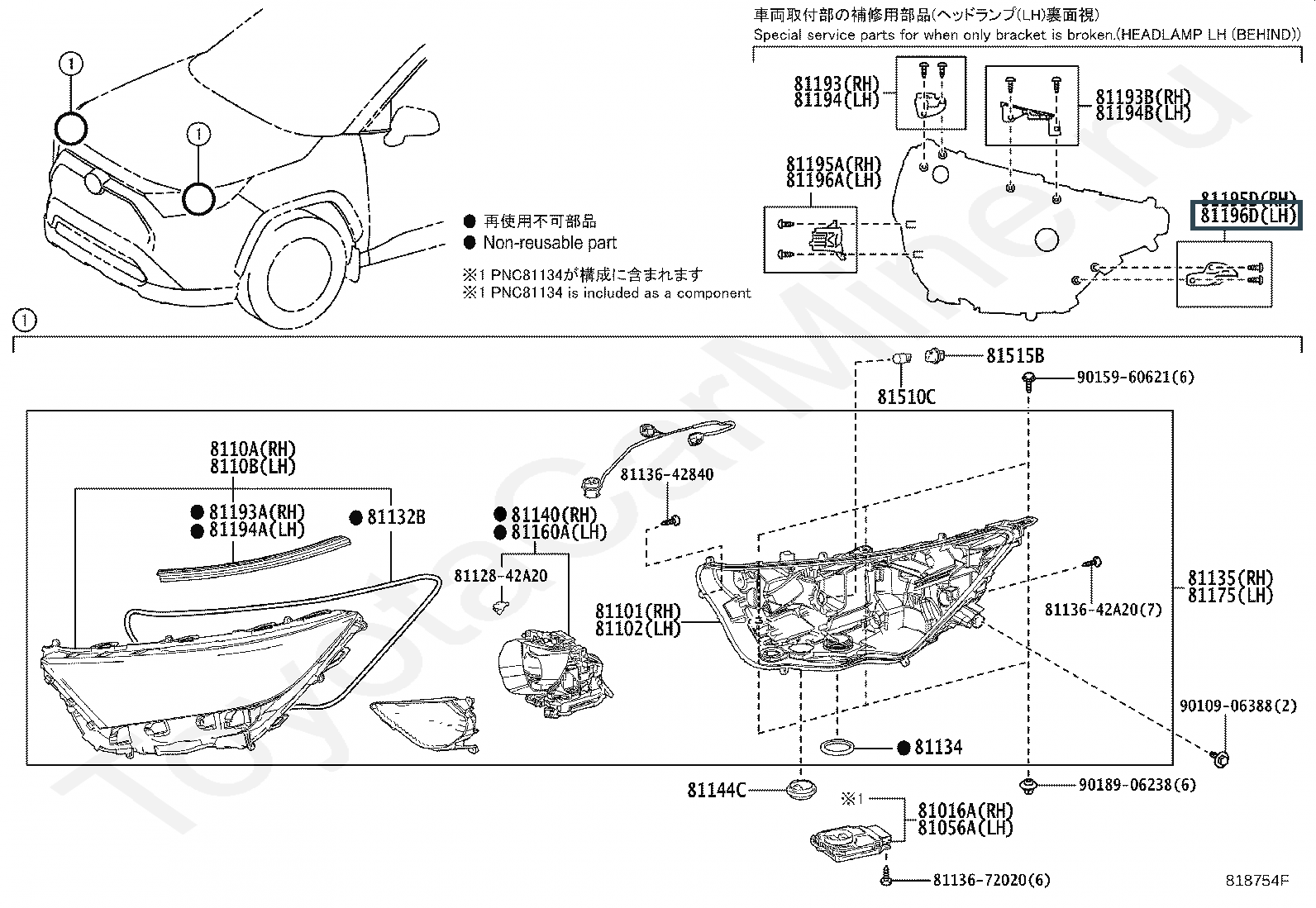 81196-42060, RETAINER, HEADLAMP PROTECTOR, LOWER LH NO.2