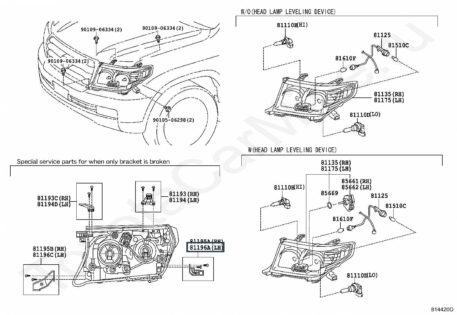 81196-60130, RETAINER, HEADLAMP PROTECTOR, LOWER LH