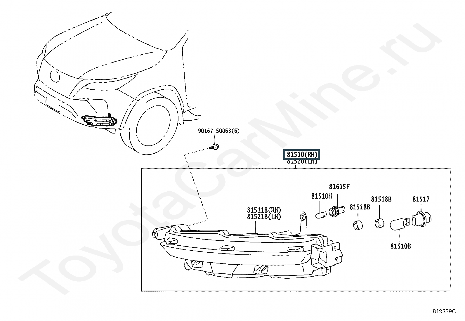 81510-0K040, Лампа указатель поворота правая