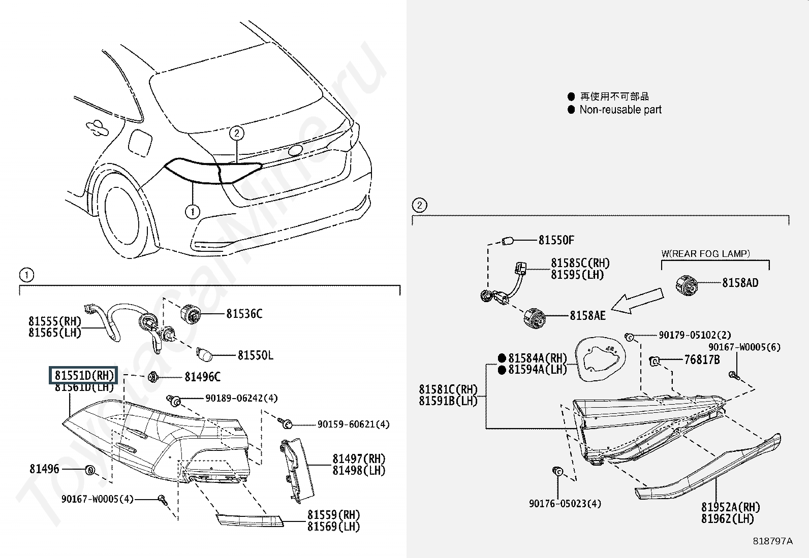 81551-02D11, LENS & BODY, REAR COMBINATION LAMP, RH