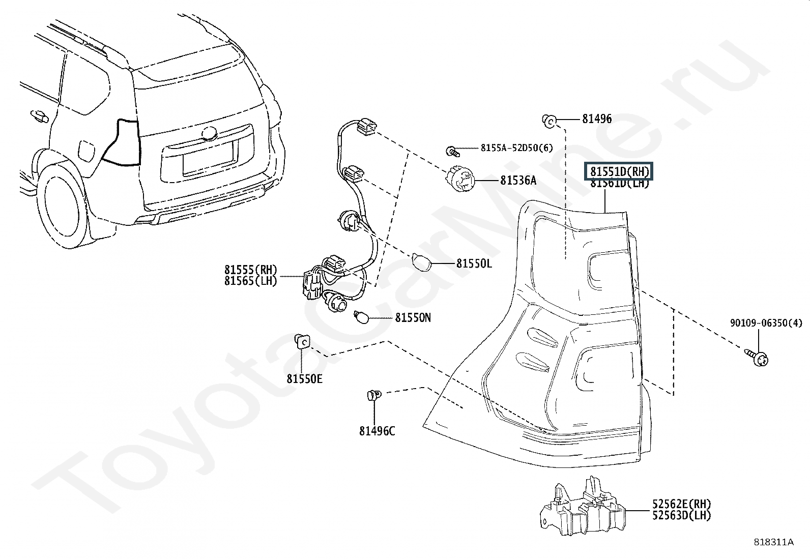 Название по каталогу: LENS & BODY, REAR COMBINATION LAMP, RH