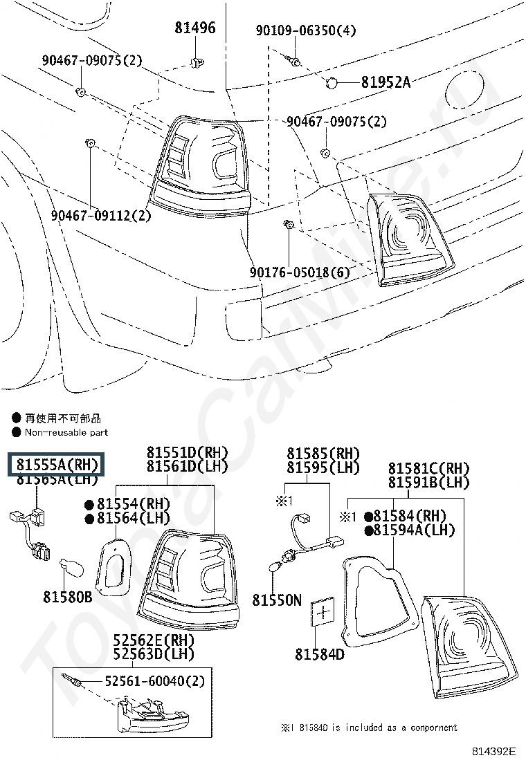 81555-60820, SOCKET & WIRE SUB-ASSY, REAR COMBINATION LAMP, LH