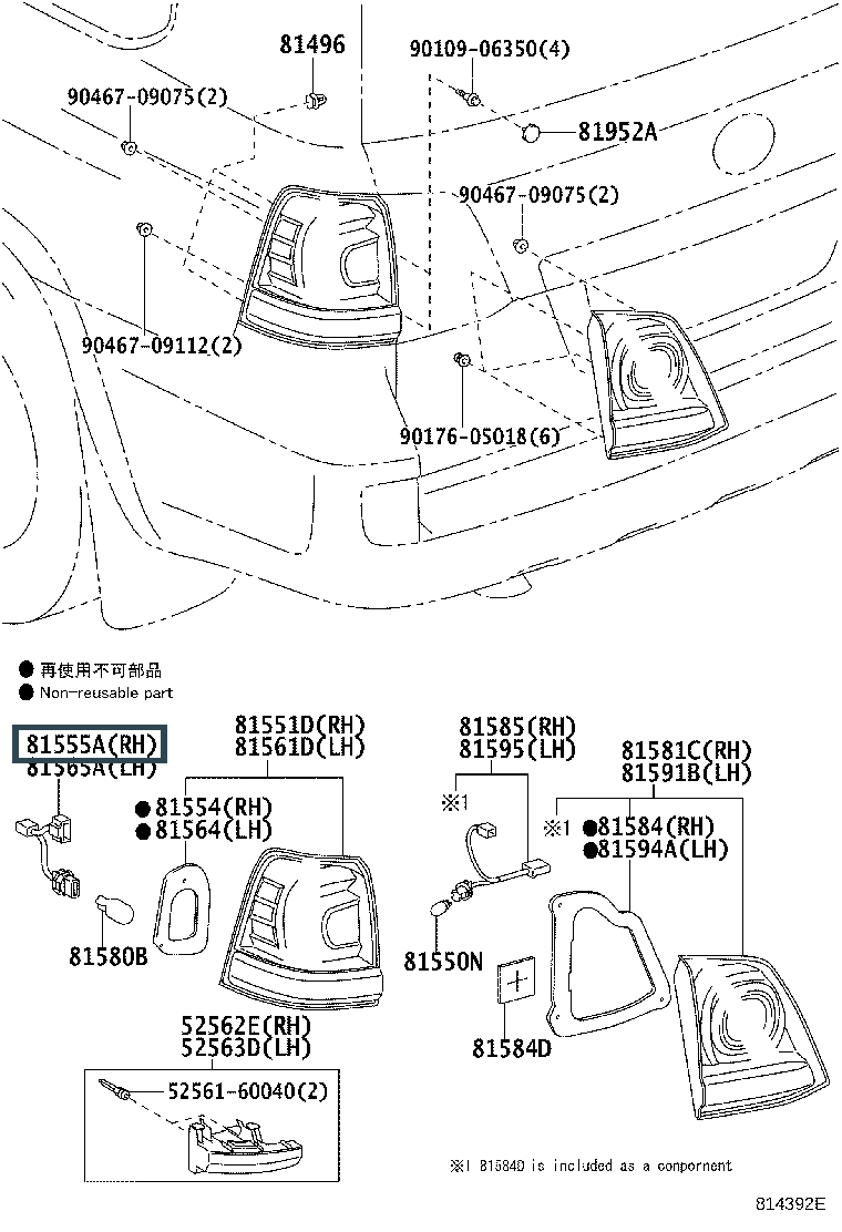 81555-60B70, SOCKET & WIRE SUB-ASSY, REAR COMBINATION LAMP, LH