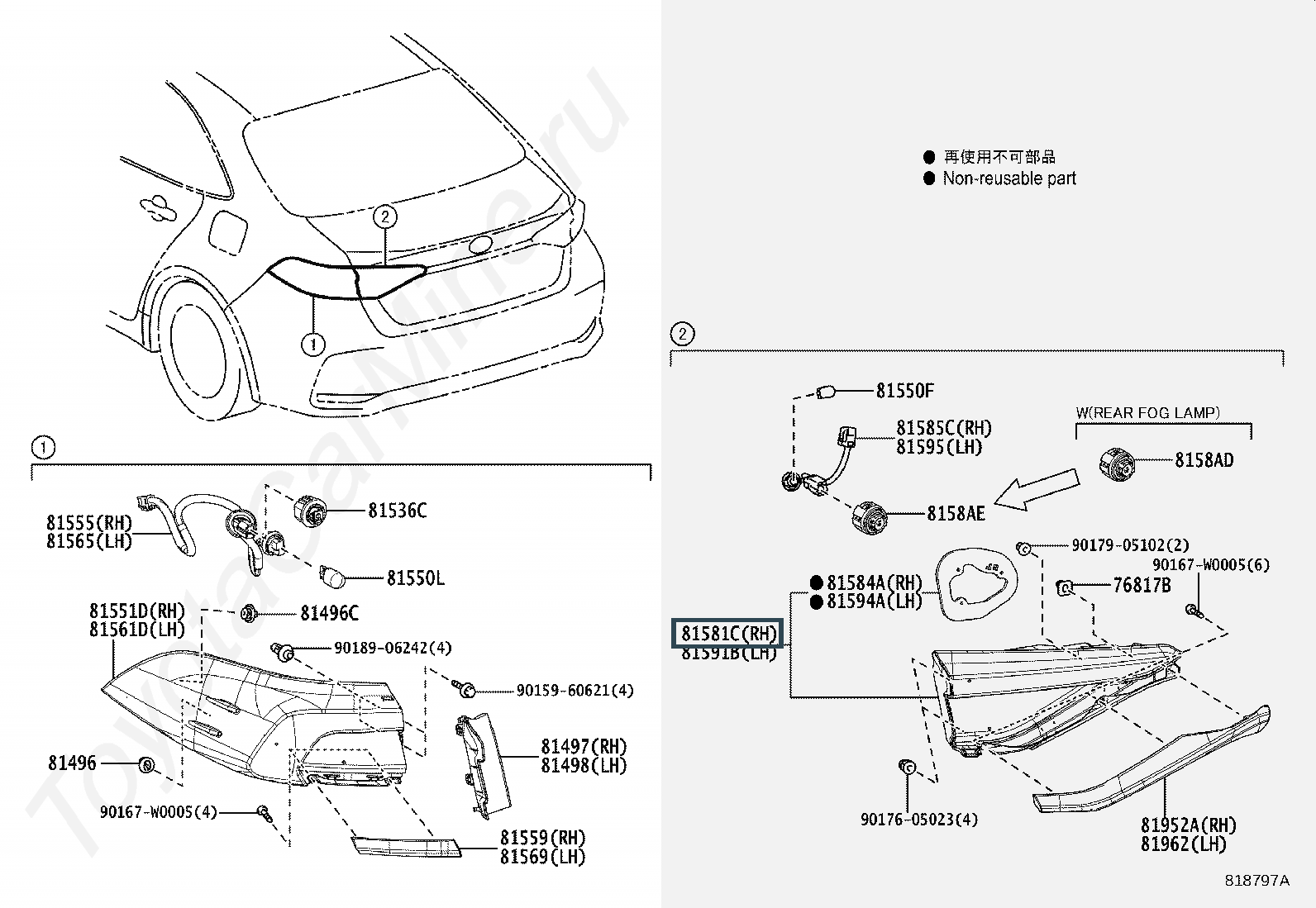 81581-02C30, LENS AND BODY, REAR LAMP, RH