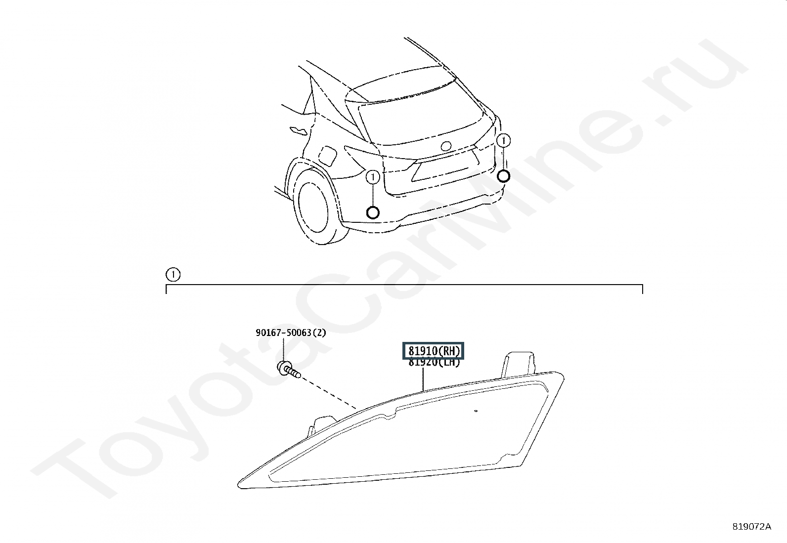 81910-48060, Отражатель в бампер задний правый