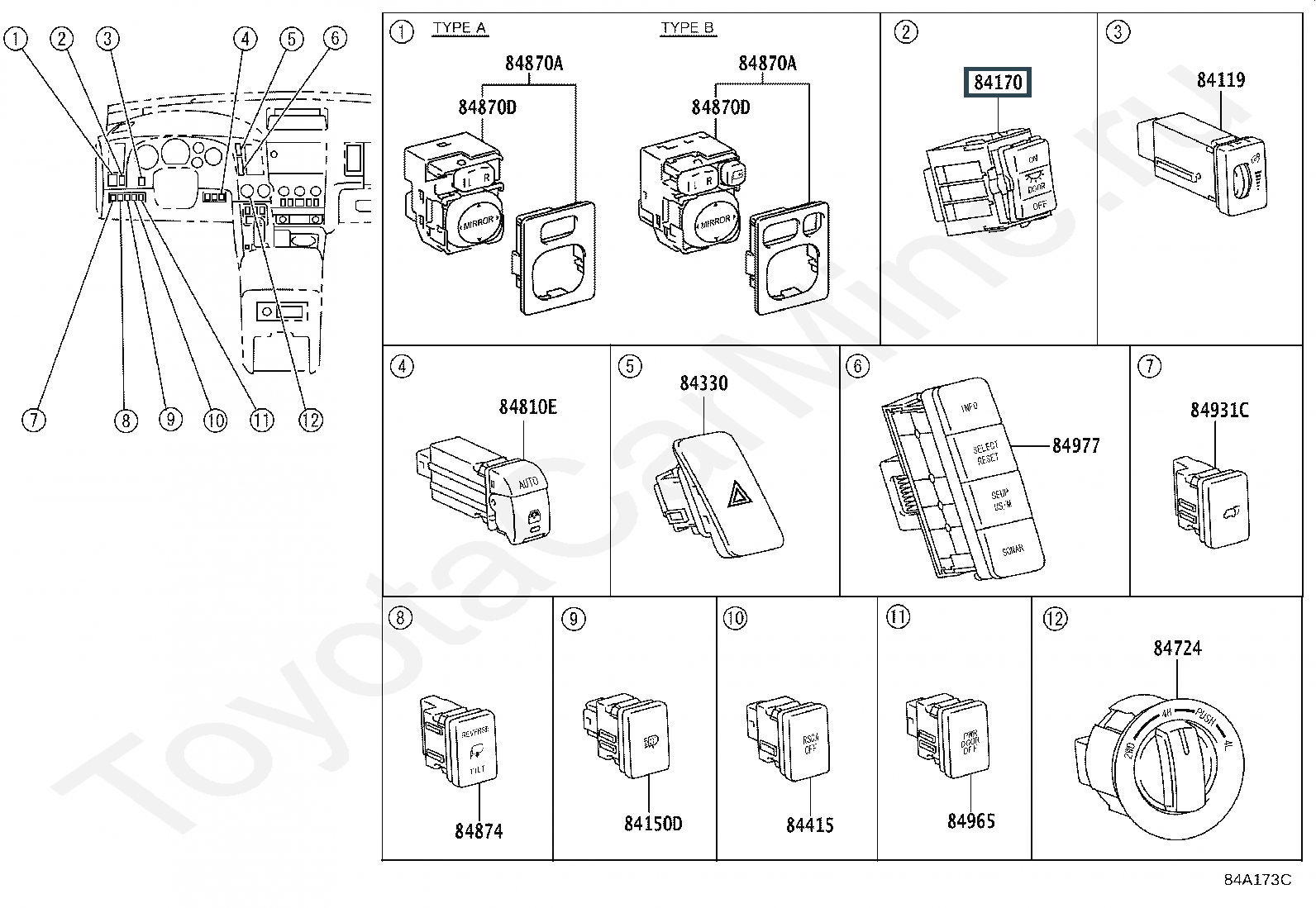84170-0C020, SWITCH ASSY, INTERIOR DOME LAMP