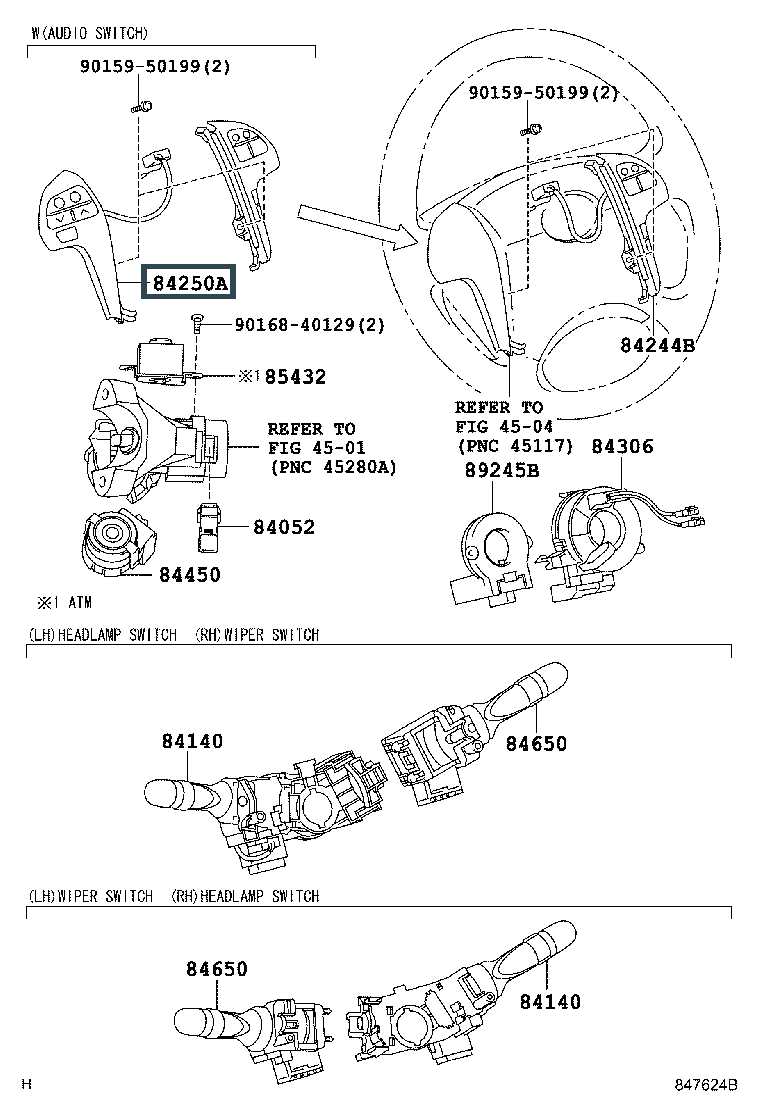 84250-33130, SWITCH ASSY, STEERING PAD