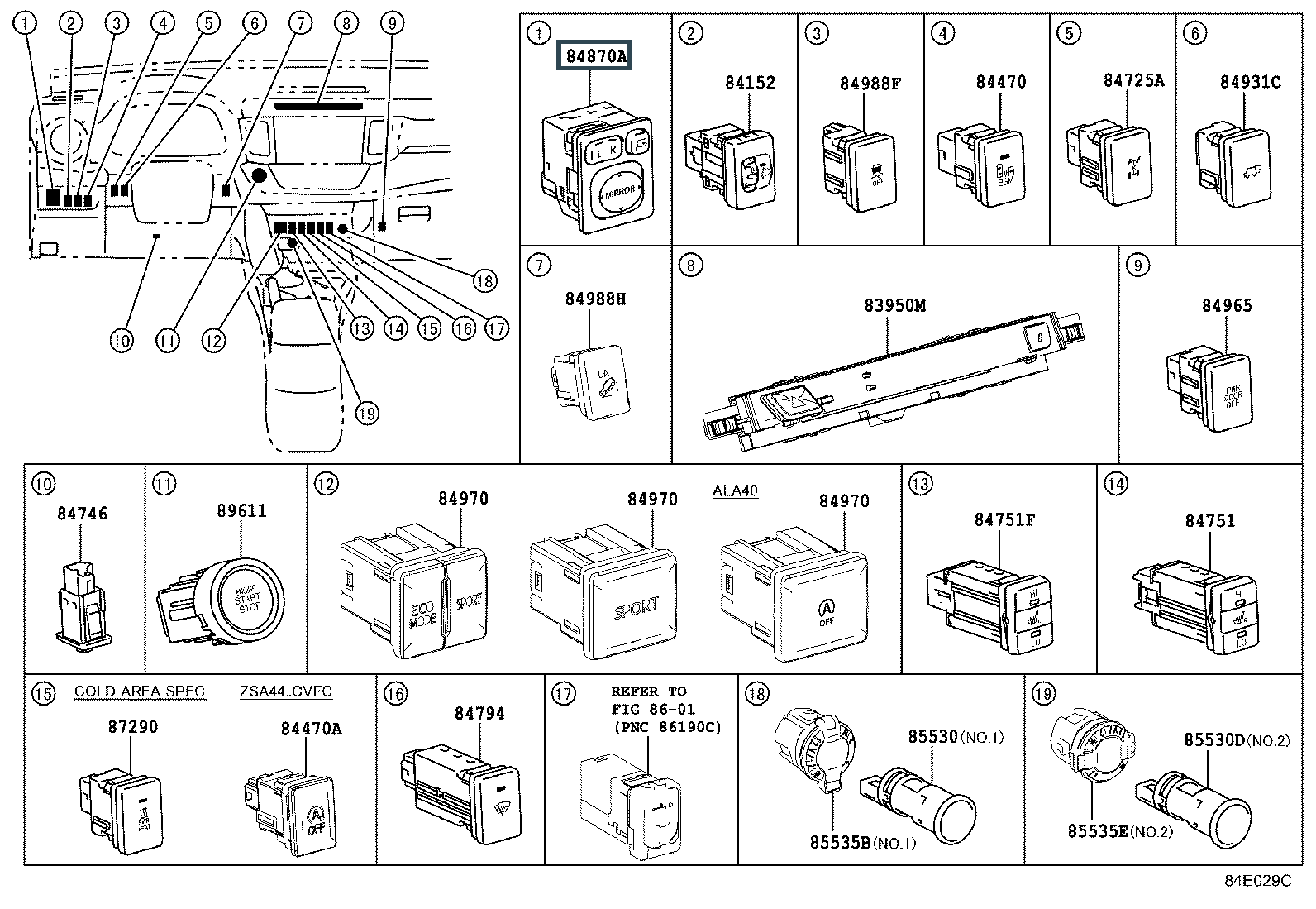 84870-52050, SWITCH ASSY, OUTER MIRROR