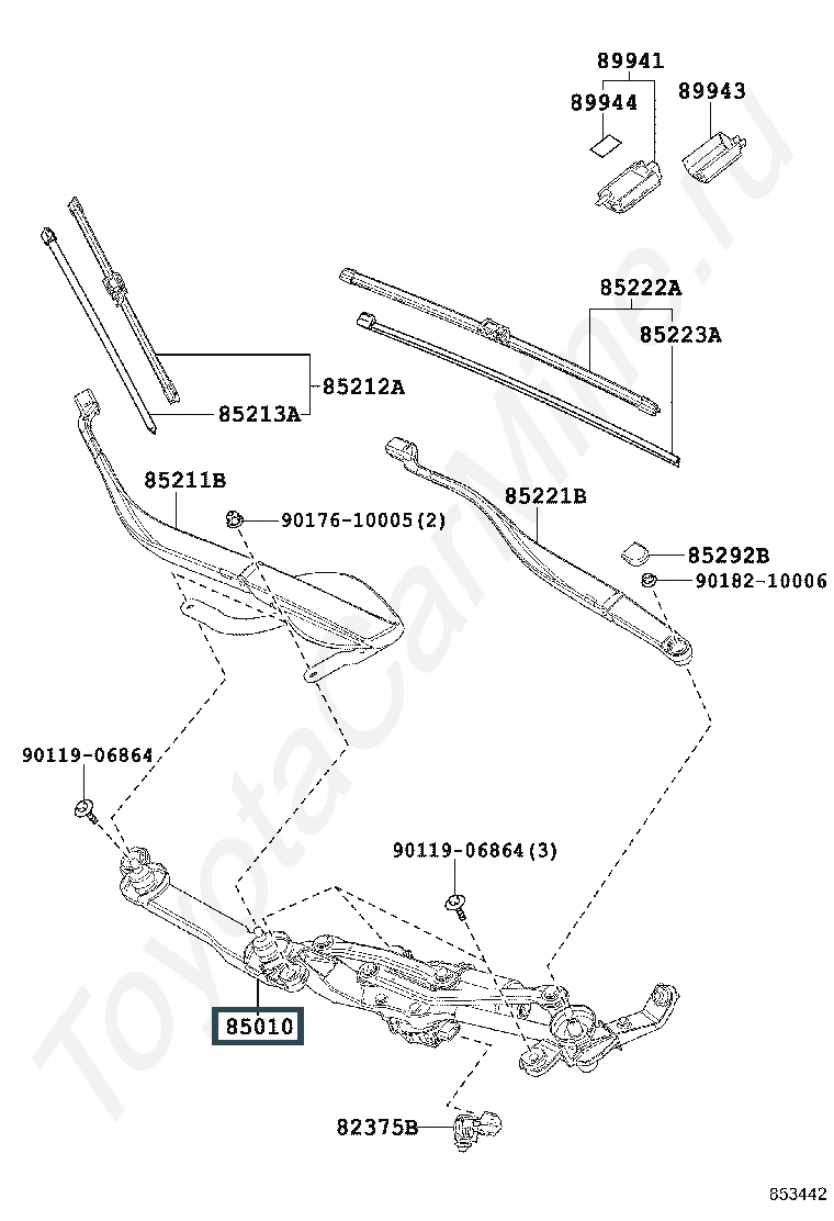 85010-48270, MOTOR & LINK ASSY, FR WIPER