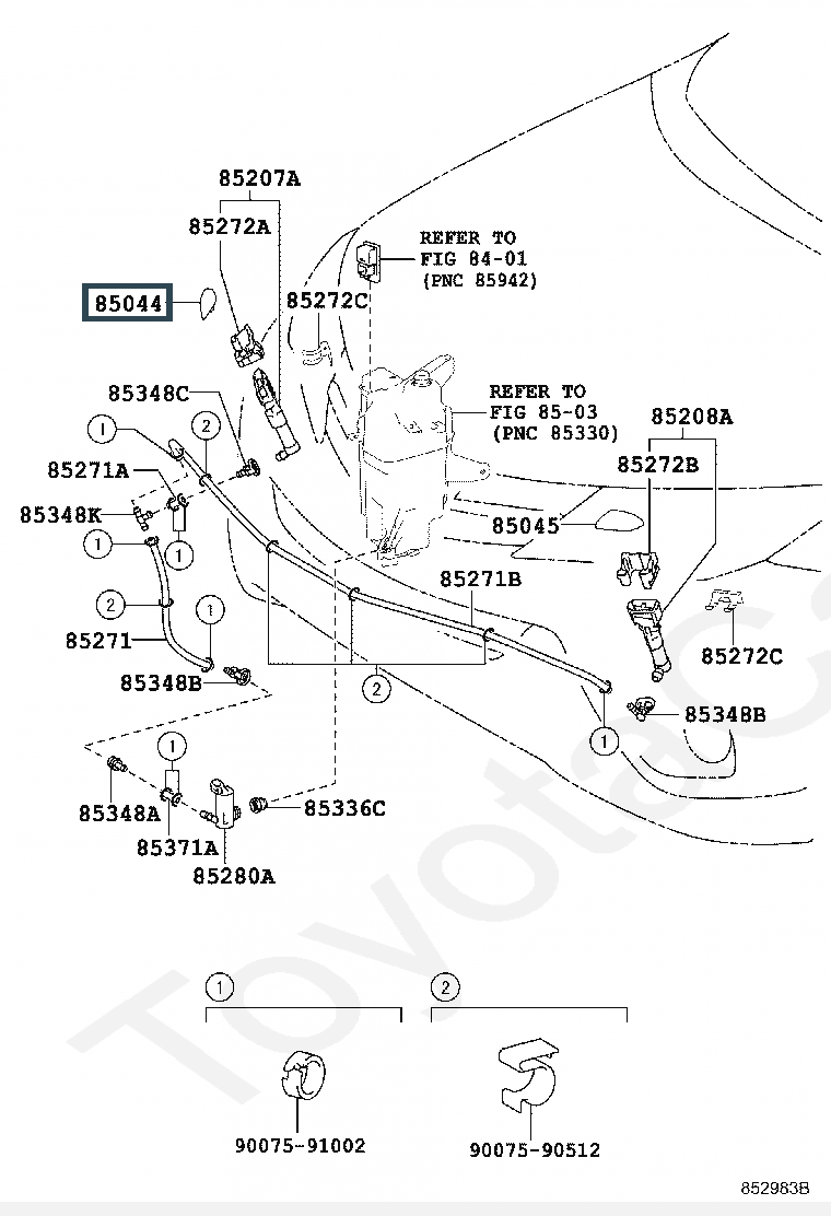 85044-42150-E0, NOZZLE SUB-ASSY, TYPE1 H/LAMP WASHER, RH