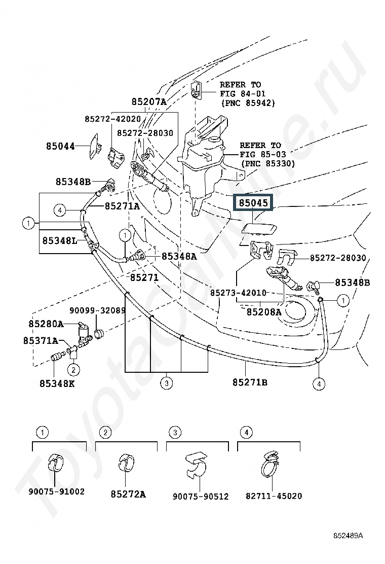 85045-42040-E0, NOZZLE SUB-ASSY, TYPE1 H/LAMP WASHER, LH