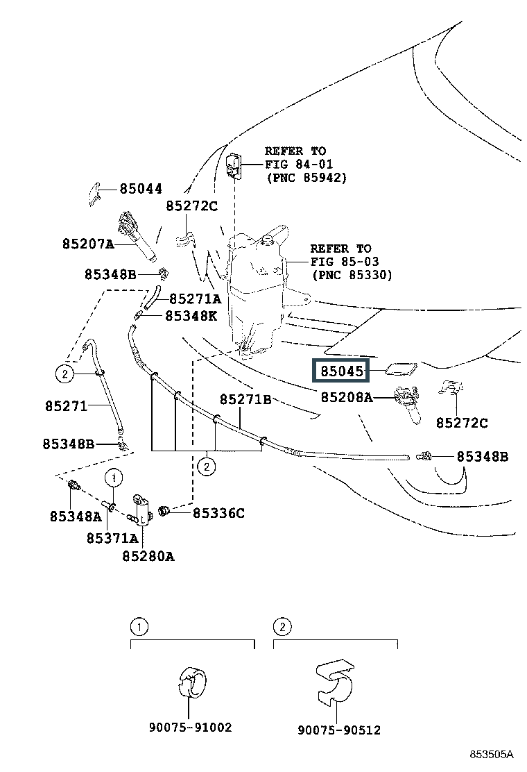 85045-42050-A0, NOZZLE SUB-ASSY, TYPE1 H/LAMP WASHER, LH