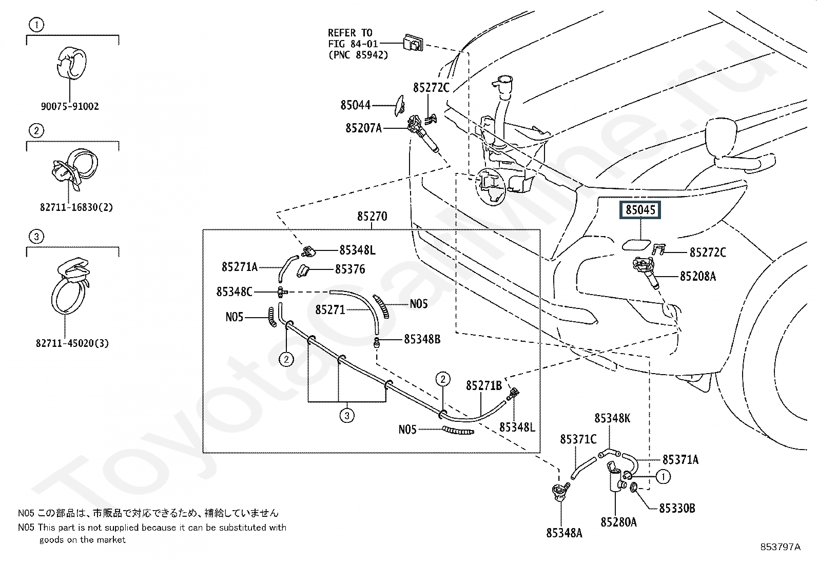 85045-60070-B1, NOZZLE SUB-ASSY, TYPE1 H/LAMP WASHER, LH