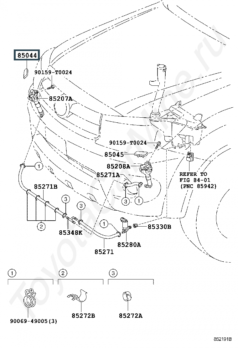 85046-71010, NOZZLE SUB-ASSY, TYPE1 H/LAMP WASHER, RH