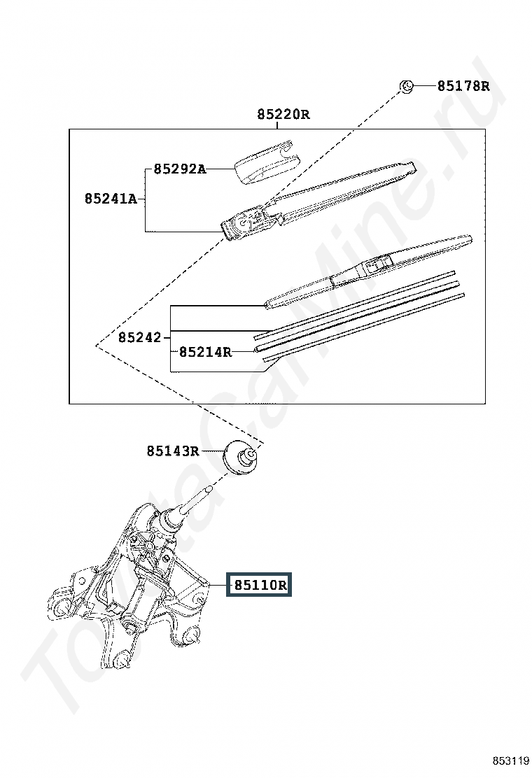 85130-0E070, MOTOR ASSY, REAR WIPER