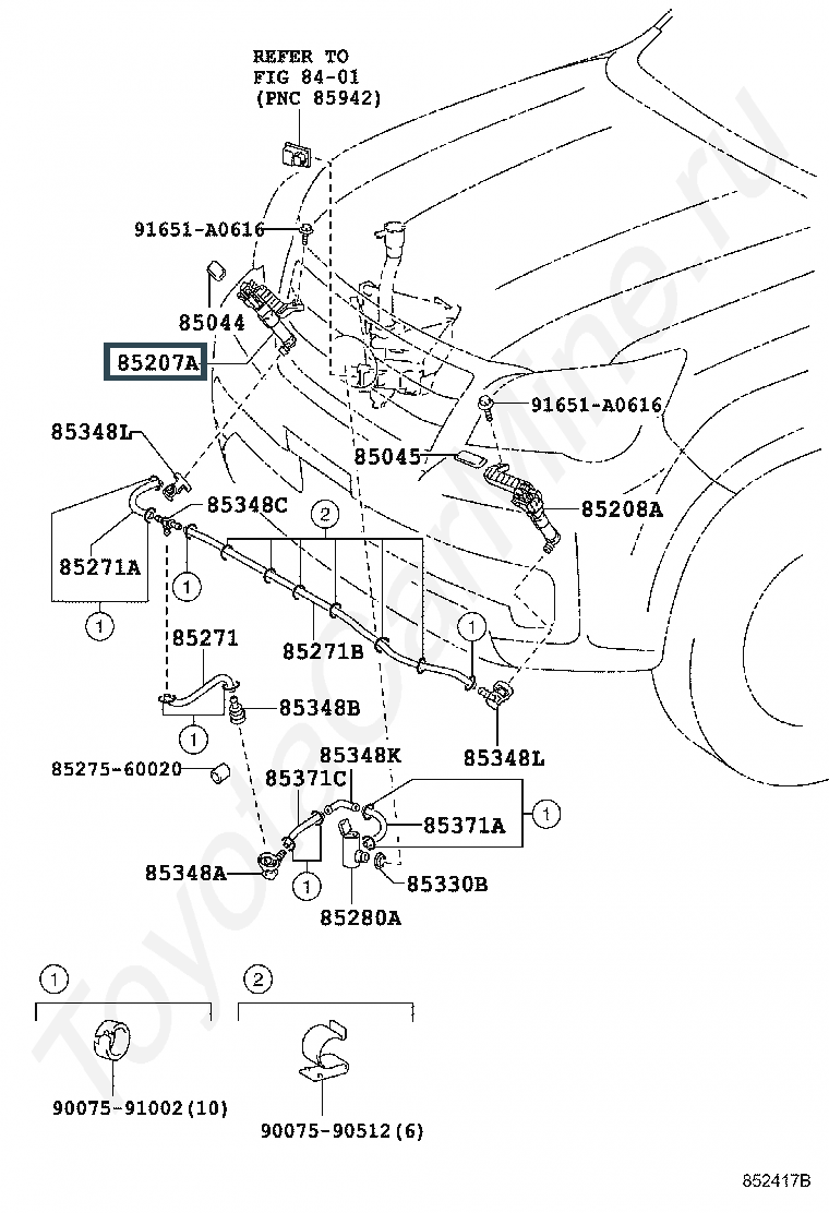85207-60130, ACTUATOR SUB-ASSY, HEADLAMP WASHER, RH