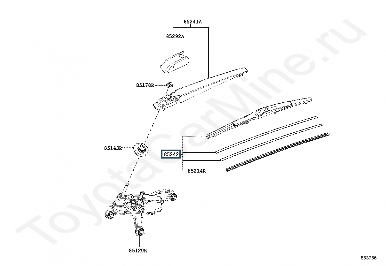 85242-12130, Щетка стеклоочистителя задняя