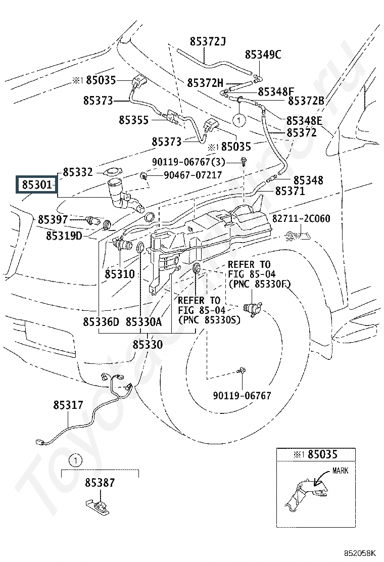 85301-60060, Горловина бачка омывателя лоб. стекла