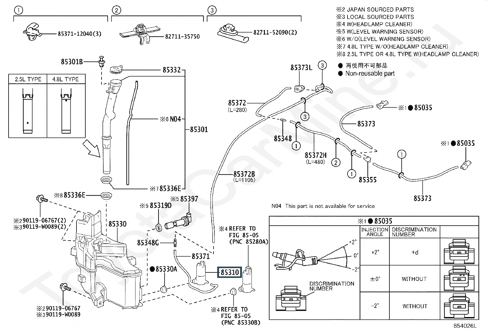85330-02080, MOTOR AND PUMP ASSY, WINDSHIELD WASHER