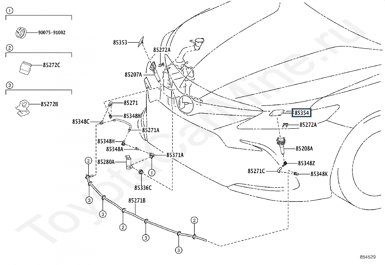 85354-33050-B0, COVER, HEADLAMP WASHER, LH
