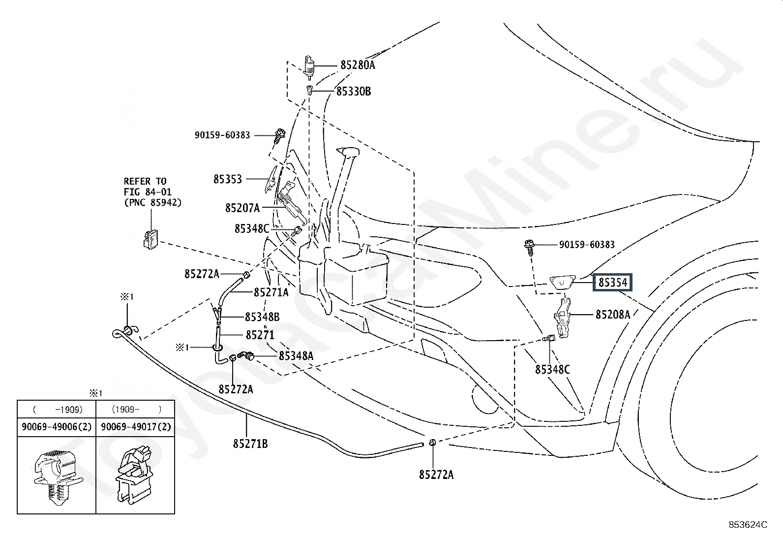 85354-F4903, COVER, HEADLAMP WASHER, LH
