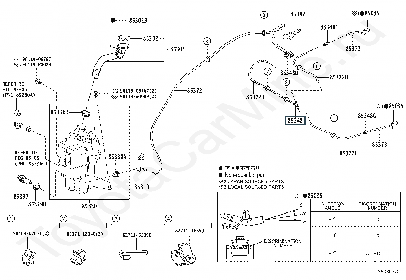 85378-33410, JOINT, WINDSHIELD WASHER HOSE, NO.1