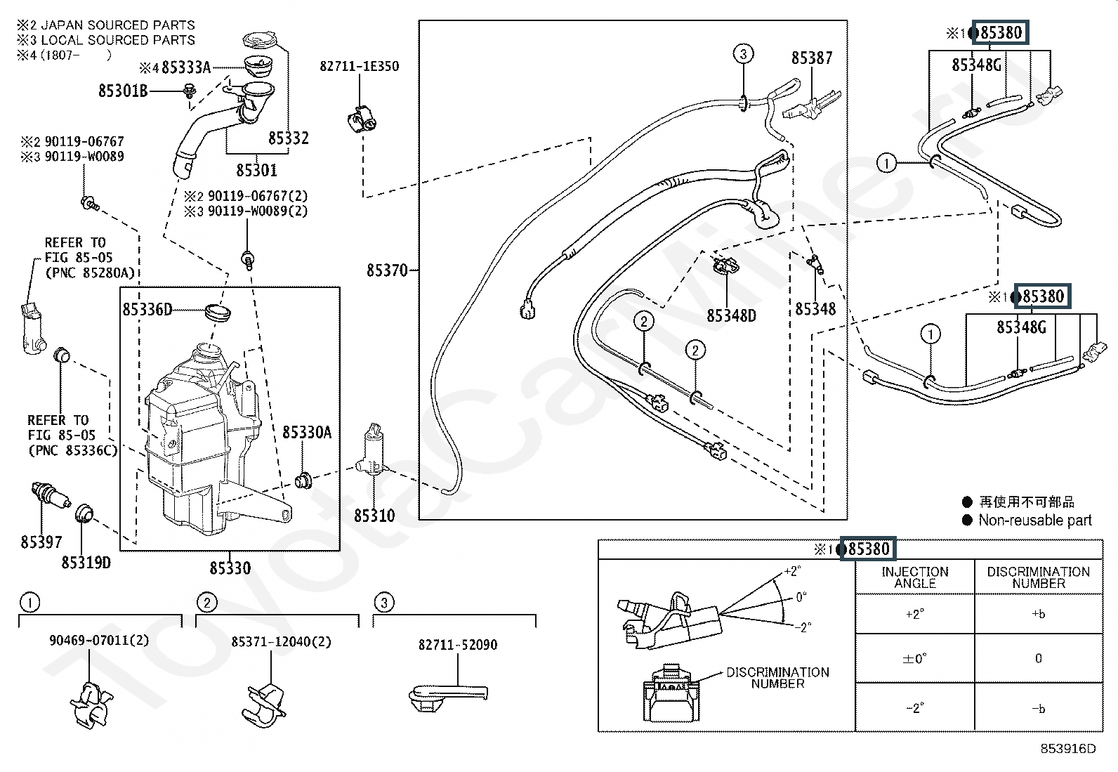 85380-33440, NOZZLE & HOSE ASSY, FR WASHER