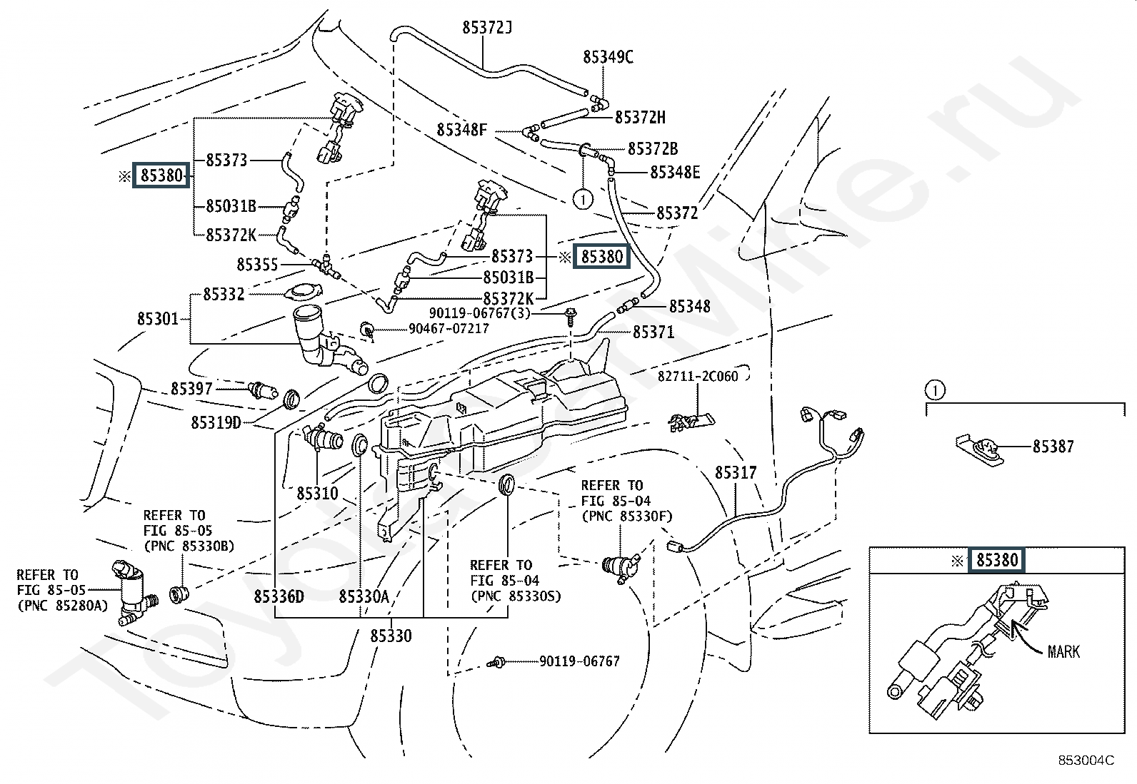 85380-60151, NOZZLE & HOSE ASSY, FR WASHER