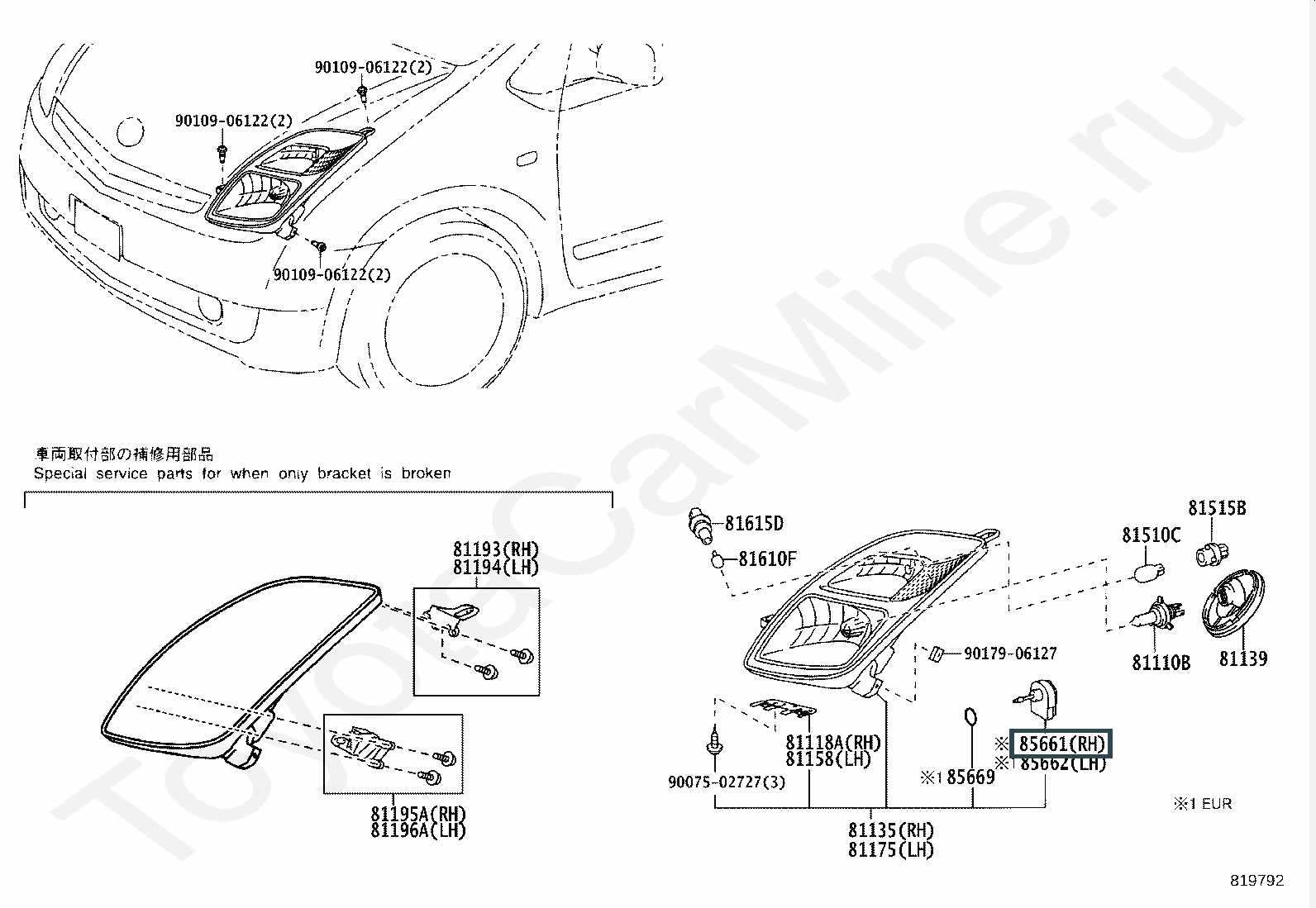 85661-22020, MOTOR, HEADLAMP LEVELING, LH