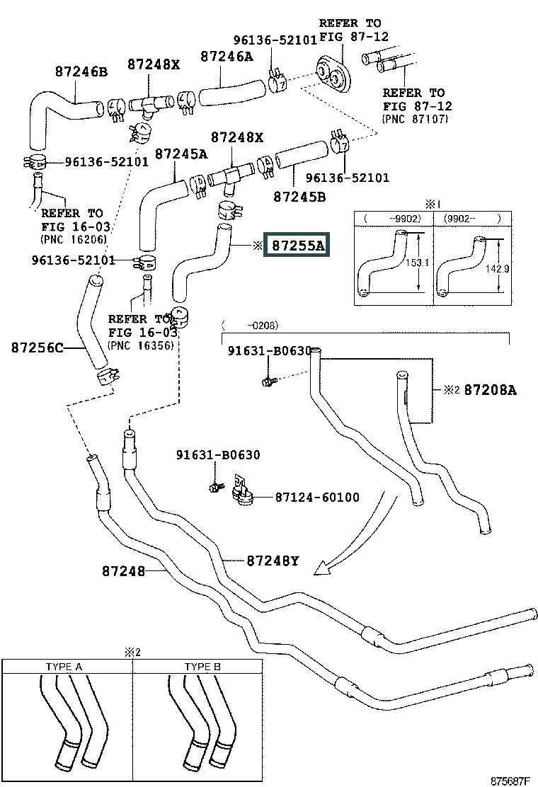 87245-6A800, HOSE, REAR HEATER WATER INLET, A(FROM ENGINE)